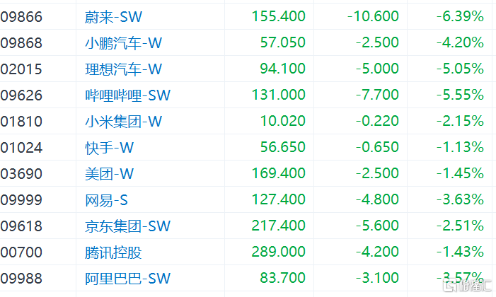 互联网科技股走势萎靡。哔哩哔哩跌逾5%,阿里巴巴、网易跌逾3%,京东、小米跌逾2%,美团、快手、腾讯跟随下跌。