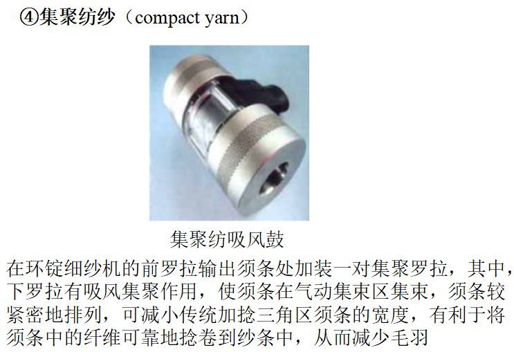 赛络纺(Sirospun)、短/长复合纺(如Sirofil)、分束纺(Solospun)和集聚纺纱(Compact yarn)