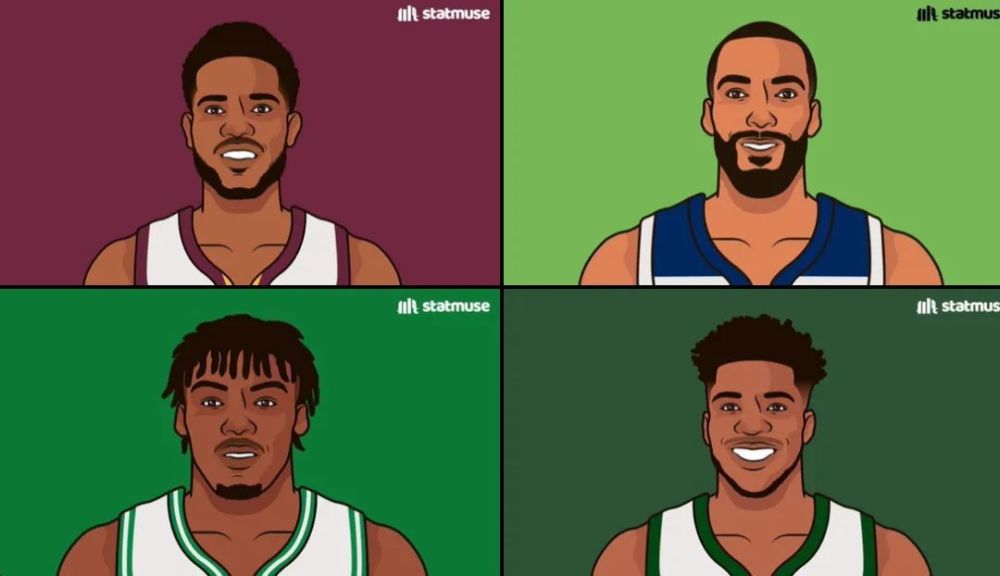 最后美媒StatMuse更新推特晒图向球迷们提问:哪支球队下赛季将拥有最棒的护框?图中的四名球员分别是骑士队的莫布里、森林狼的戈贝尔、绿军的罗威以及雄鹿的字母哥!你认为呢?